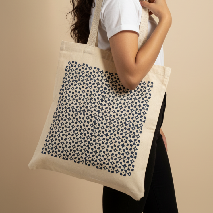 Each tote bag is handmade and handprinted, making every piece unique. The natural charm of block printing may include slight variations, which add to the authenticity and artisanal value of the product.