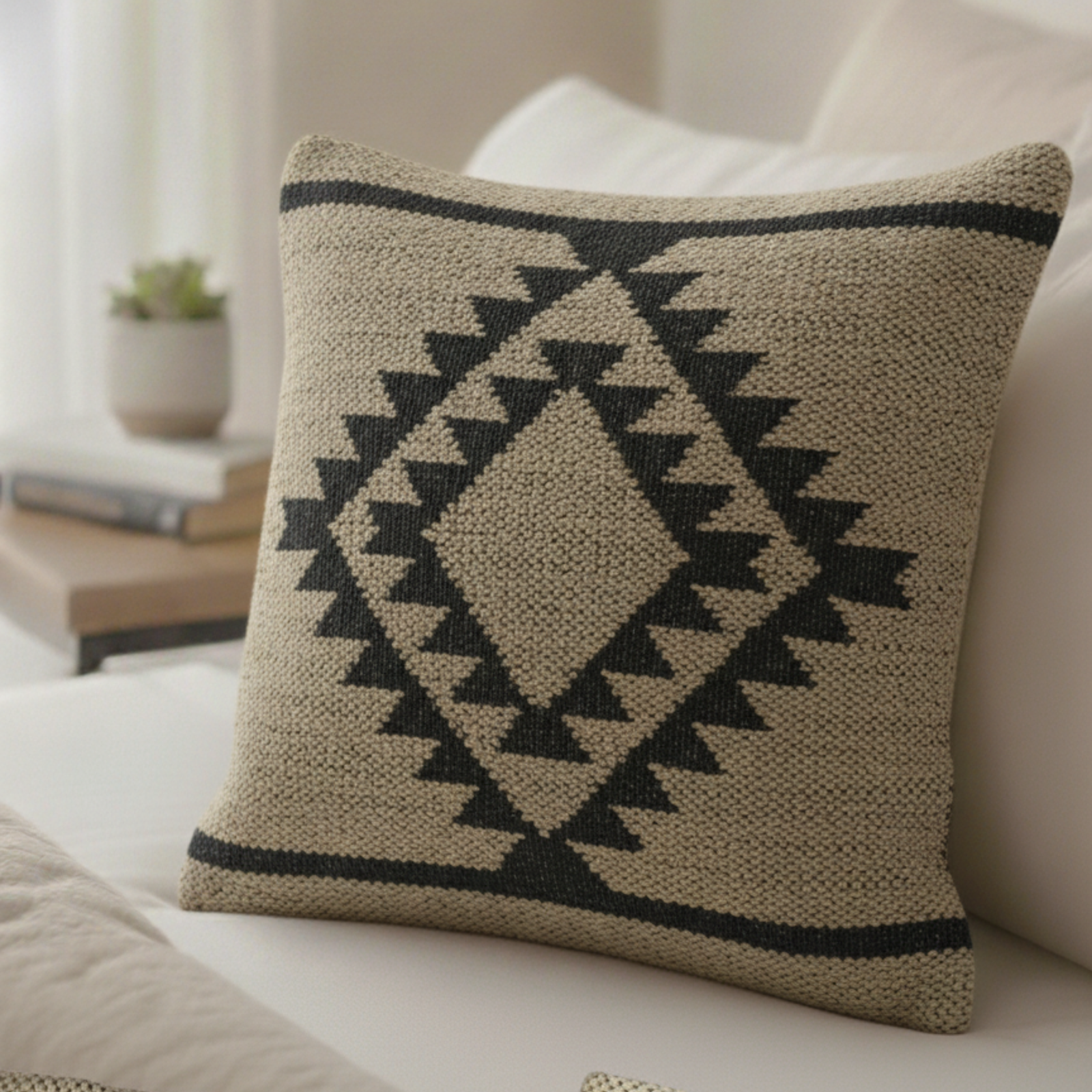 These 18×18-inch pillow covers are crafted using the traditional flat-weave technique, giving them a rich texture and authentic handcrafted appeal. Perfect for cozy corners, rustic interiors, or bohemian living spaces, they bring together timeless design and modern comfort.